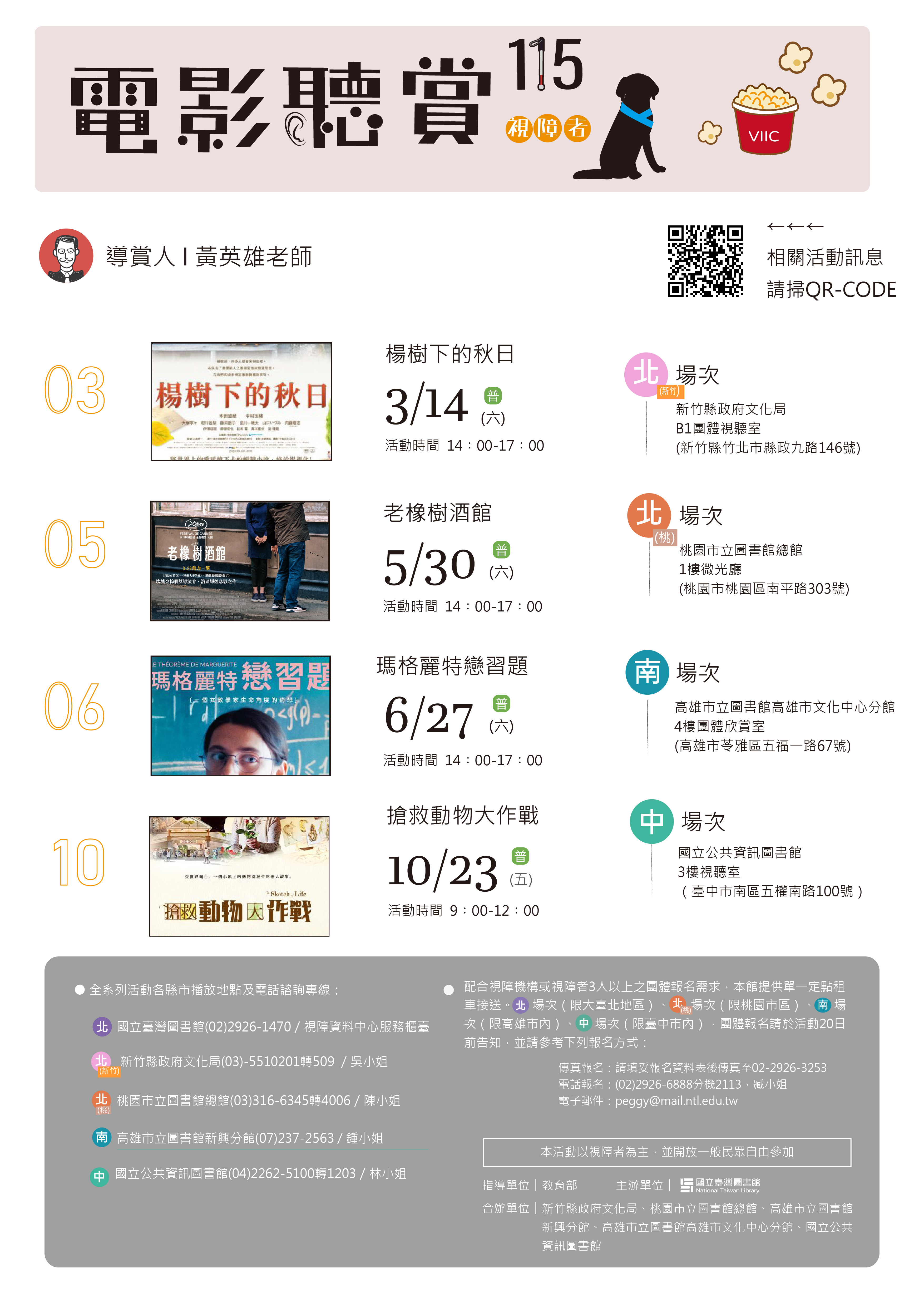 國立臺灣圖書館115年1月17日至12月19日間辦理視障者電影聽賞活動